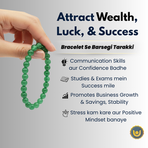 Green Aventurine Bracelet exalts Mercury planet, charms luck, improves communication skills, success in education, gives sharp brain, develops business sense, showers wealth, improves humour, treats lungs disorders, and brushes up talents.