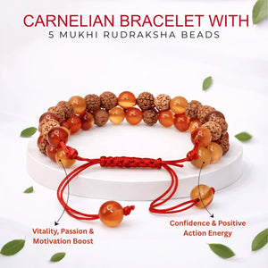 Carnelian Bracelet With 5 Mukhi Rudraksha Beads