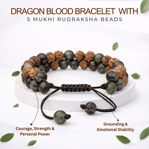 Dragon Blood Jasper Bracelet With 5 Mukhi Rudraksha Beads
