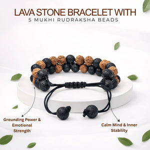 Lava Stone Bracelet With 5 Mukhi Rudraksha Beads