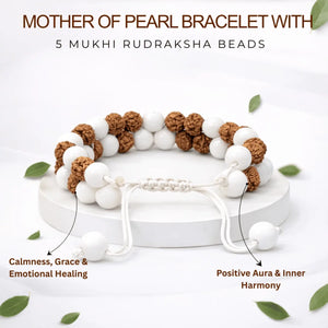Mother of Pearl Bracelet With 5 Mukhi Rudraksha Beads