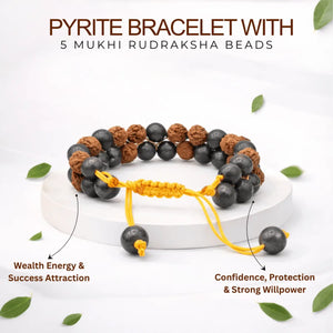 Pyrite Bracelet With 5 Mukhi Rudraksha Beads