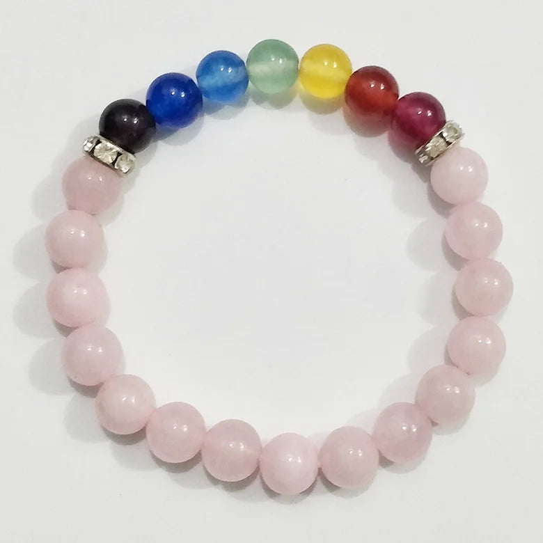 - A powerful “Rose Quartz 7 Chakra Bracelet”