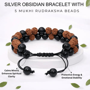 Silver Obsidian Bracelet With 5 Mukhi Rudraksha Beads