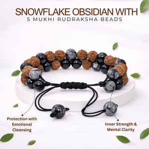 Snowflake Obsidian Bracelet With 5 Mukhi Rudraksha Beads
