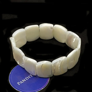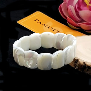 - White pearls oval faceted bracelet believed to harmonize the sacral and heart chakras. Experts call it ideal for meditation, intention setting, or calming rituals.